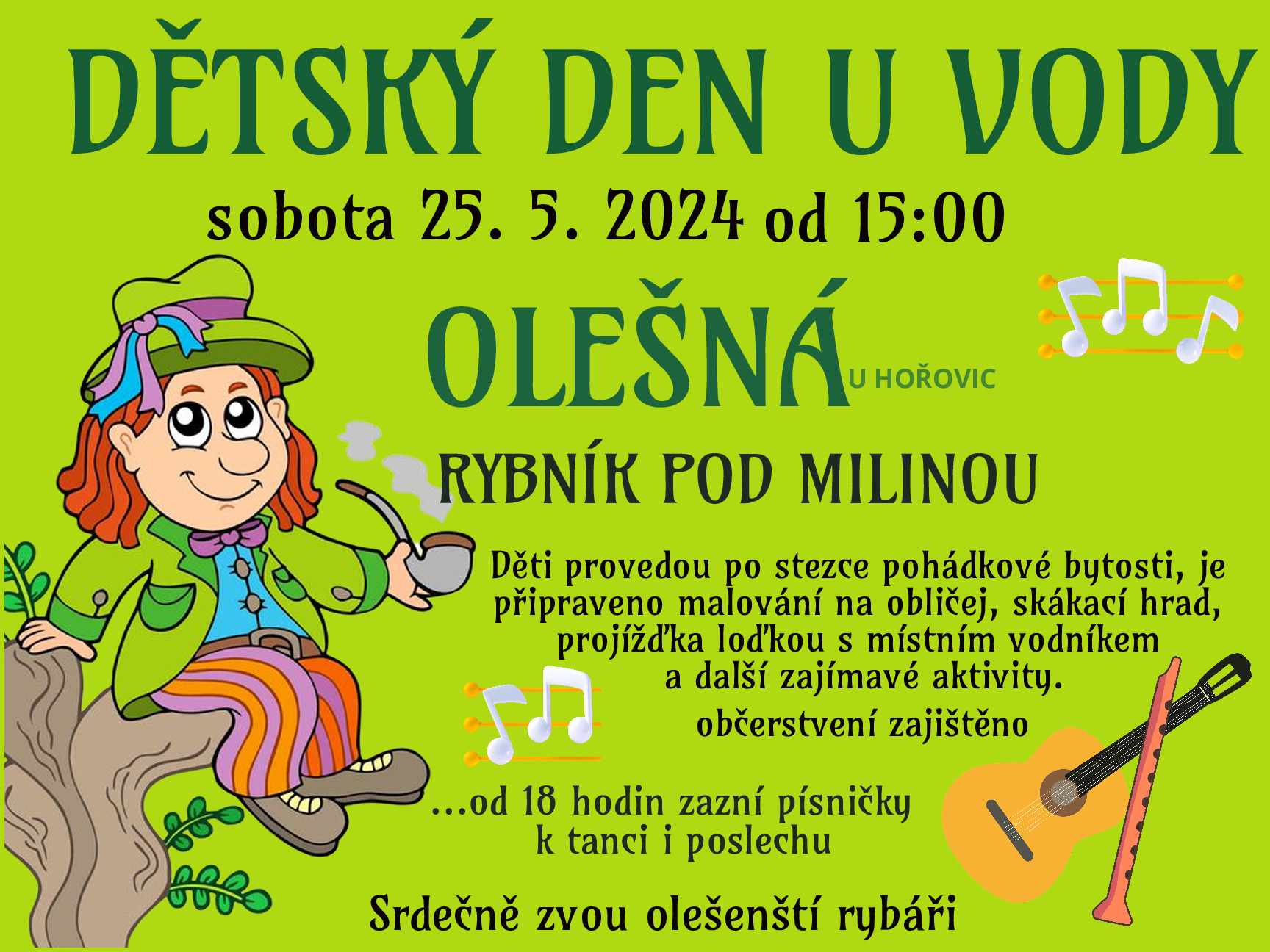 Rybáři Olešná zvou všechny občany na letní akci u rybníka pod Milinou. Loučení s prázdninami proběhne v sobotu 28. 8 . 2023 od 14 hodin. V rámci akce se bude premiérově konat také Neckiáda, tedy soutěž netradičních plavidel, aneb přeplav rybník na čemkoliv. Registrace plavidel je možná na e-mailu: rs.milina@seznam.cz.