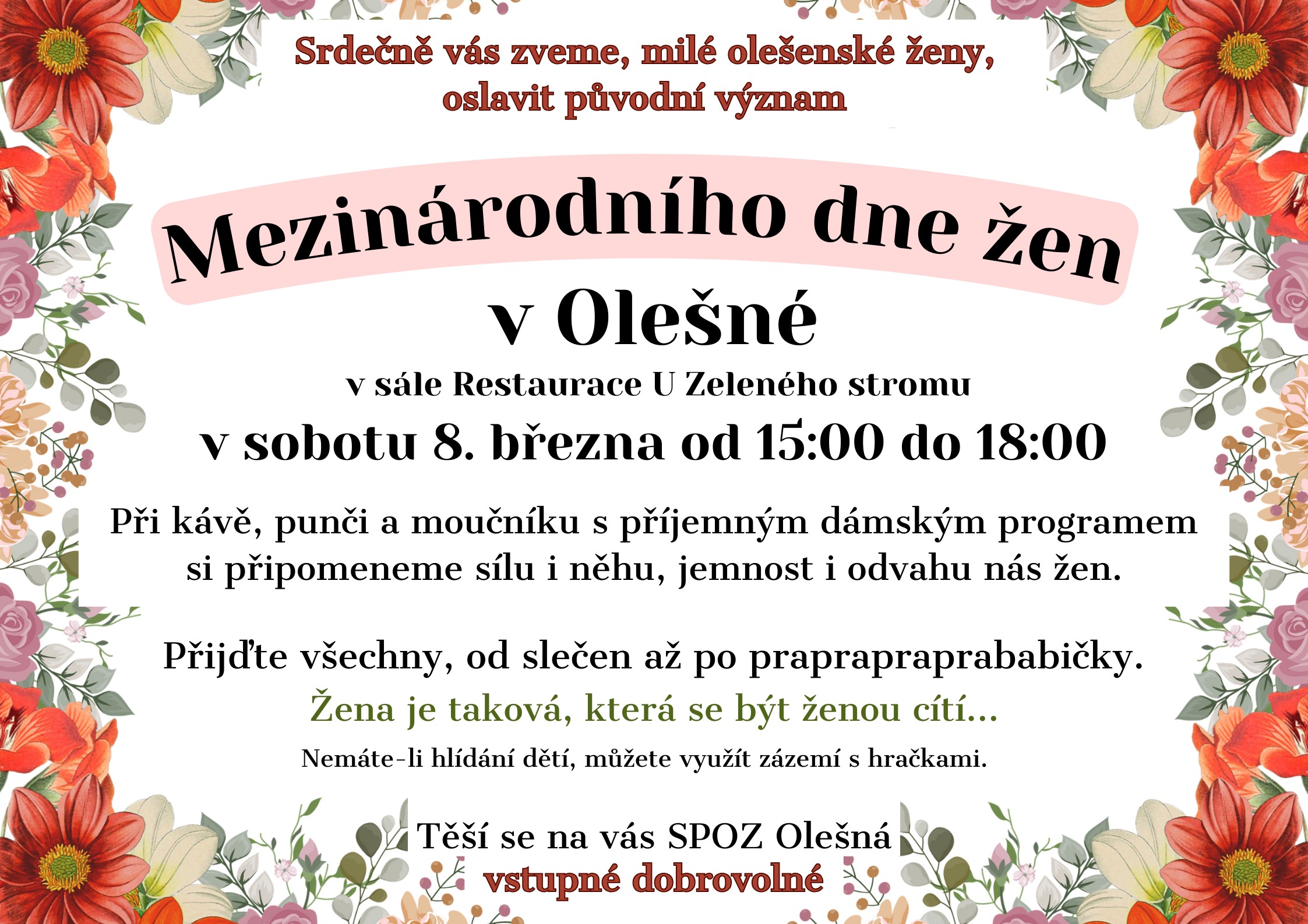 Všechny olešenské dívky a ženy srdečně zve Sbor pro občanské záležitosti Olešná.