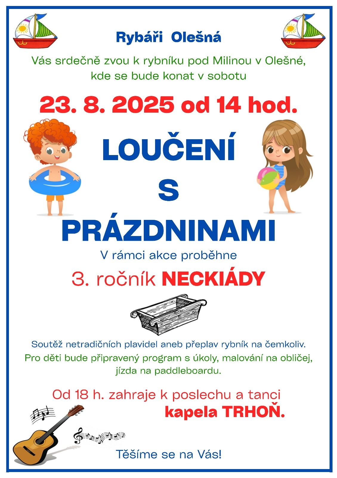 Loučení s prázdninami v Olešné a 3. ročník Neckiády 23. 8. 2025