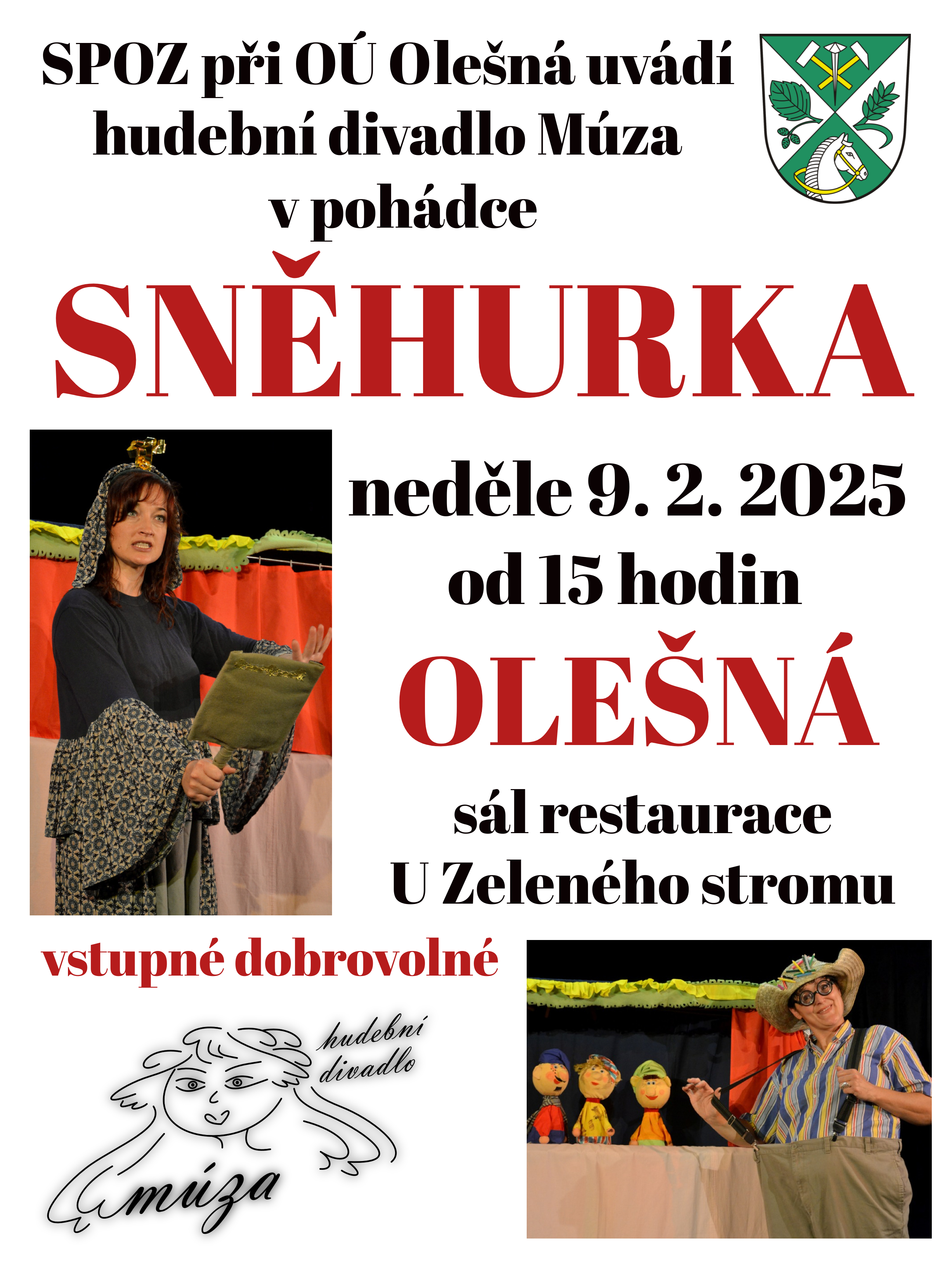 Srdečně zveme všechny děti i dospělé na divadelní pohádku Wigo a jeho kouzelný svět, kterou nám v Olešné zahrají Marek Šmied a Adéla Špulková v neděli 1. února 2026. Děvčata ze Sboru pro občanské záležitosti.