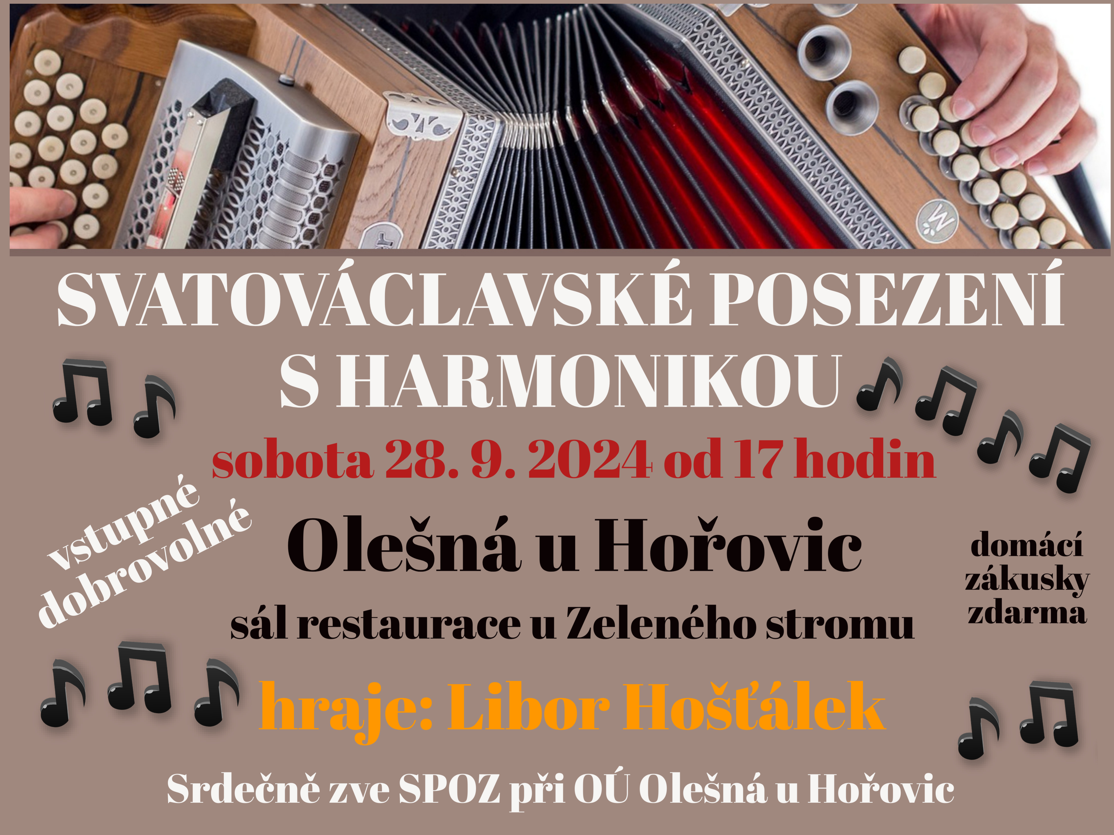 Olešenské svatováclavské posezení s harmonikou v sobotu 23. září 2023