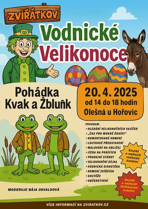 Vodnické Velikonoce se blíží – a my jsme pro vás připravili den plný pohádek, tvoření, zábavy a mazlivých zvířecích kamarádů