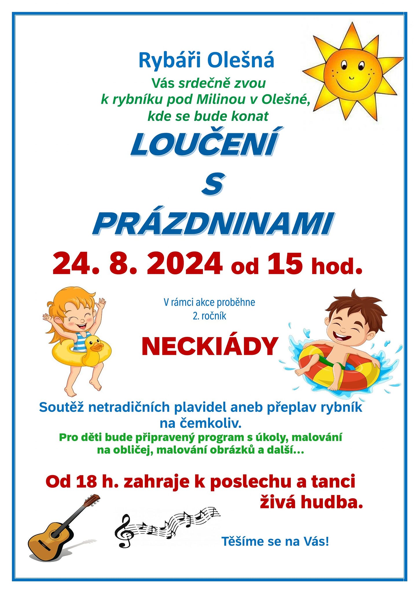 Loučení s prázdninami 24. 8. 2024 u rybníka pod Milinou + 2. ročník Neckiády